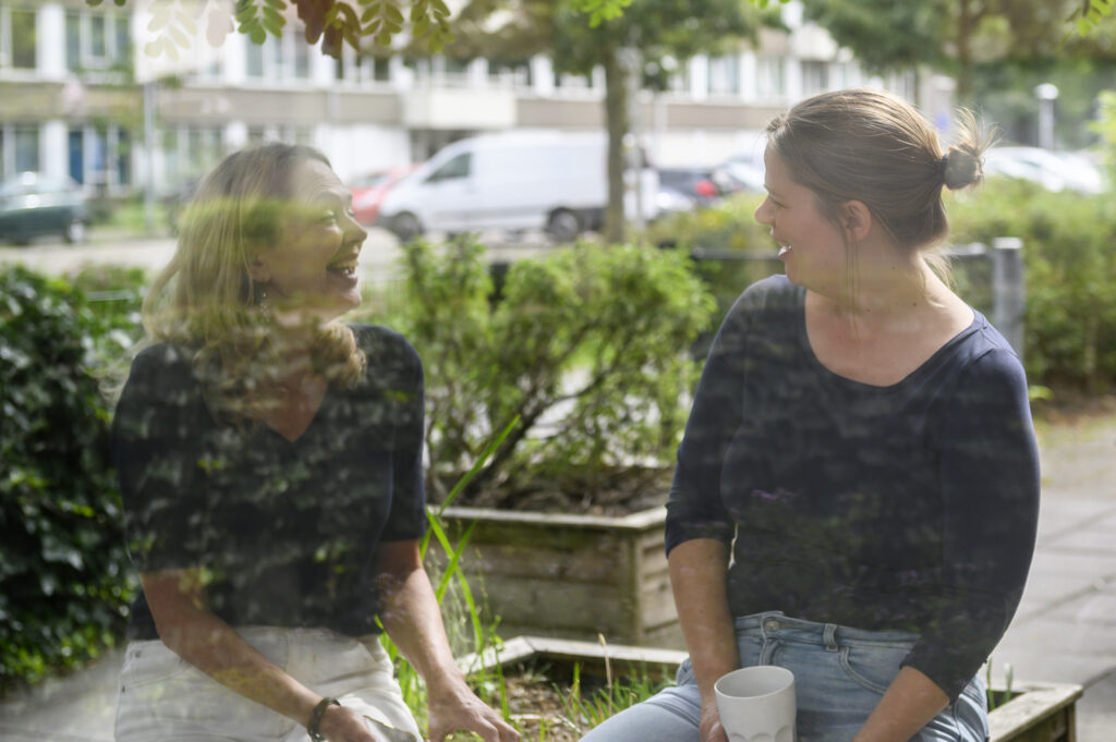 Leidy: ‘Ik weet nog dat de eerste periode in de wijk voor mij echt een cultuurshock was. Ik dacht bij bijeenkomsten: waar zijn de sheets? Waar is de agenda? Hoezo hebben we geen laptop, geen tafel, wat is dit voor een wazig geitenwollensokken-gebeuren? Ik had een heel duidelijk oordeel, en vond het tijd- en geldverspilling. Het kostte tijd voor ik de kracht van dat type aanwezigheid in de wijk zag. Ook in mij wringt dat soms nog, want vanuit het gemeentesysteem bepaalt mijn volle agenda nog altijd hoe mijn dagen eruit zien. Maar, ik probeer zoveel mogelijk de structuur van het systeem de wijk in te brengen, en zoveel mogelijk werkelijkheid en verbinding vanuit de wijk het systeem in.’