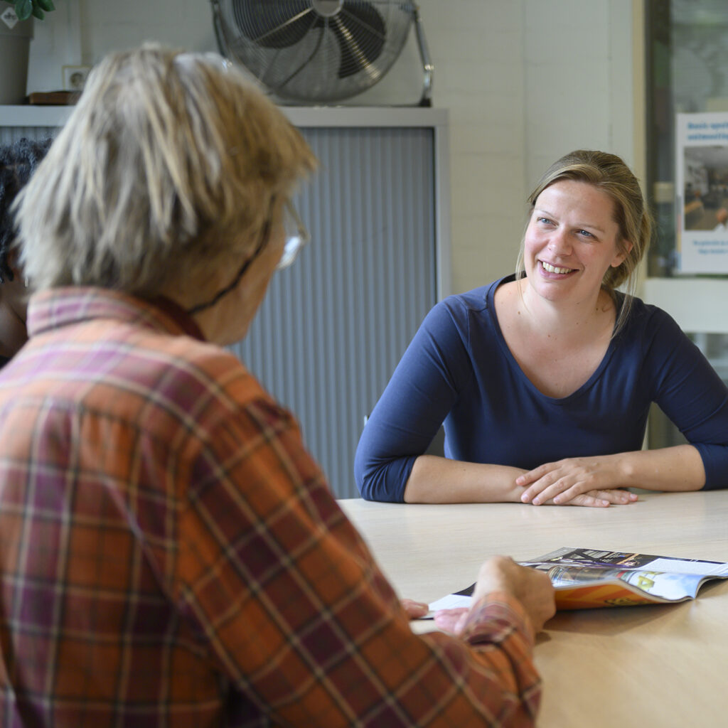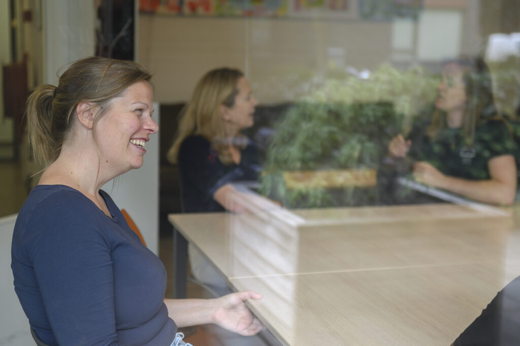 Op de achtste verdieping van een kantoor in Hoog Catharijne, zit de grootste uitvoerende afdeling van Gemeente Utrecht: afdeling Werk & Inkomen. Leidy is hier beleidsadviseur, maar ook Nadja komt hier graag over de vloer om te buurten met Leidy en Bewust Buurten-alumni (‘De mensen hier vroegen me al of ik soms een toegangspasje wou’).