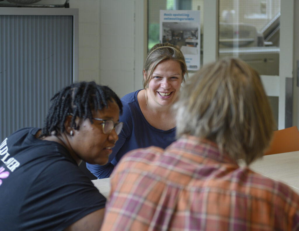 Leidy: ‘De ontwikkeling die deelnemers doormaken met dit programma, geeft ze ook veel werkplezier. Dat herken ik zelf ook uit de uren die ik doorbreng in de wijk. En ik hoor dat deelnemers na afloop met elkaar verbonden blijven, in een appgroep. Eigenlijk stoppen ze gewoon niet met het programma — kijk naar Marije die taalmaatje werd en zich nog steeds betrekt bij het netwerk rondom Buurtcentrum Oase, om informeel advies op te halen voor keuzes in haar werk.